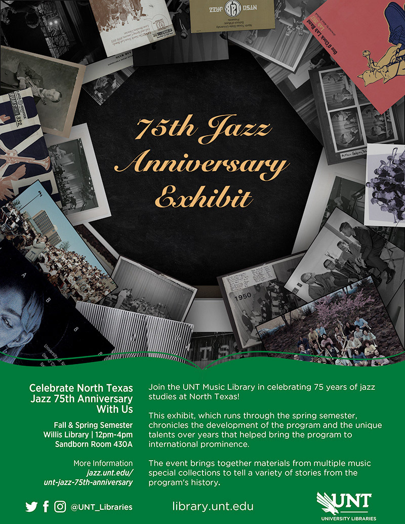 For the design of the 75th Jazz Anniversary Banners, I created a collage featuring album covers from Jazz artists who are alumni of the UNT Jazz program. This visual composition was intended to celebrate the rich musical heritage of the school, showcasing the immense talent that has emerged from its storied history. By incorporating these albums, the design highlights the lasting impact of UNT Jazz musicians on the genre and honors their contributions to the world of music.